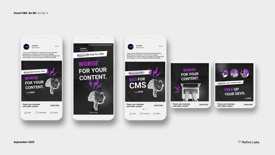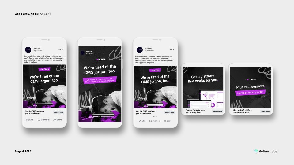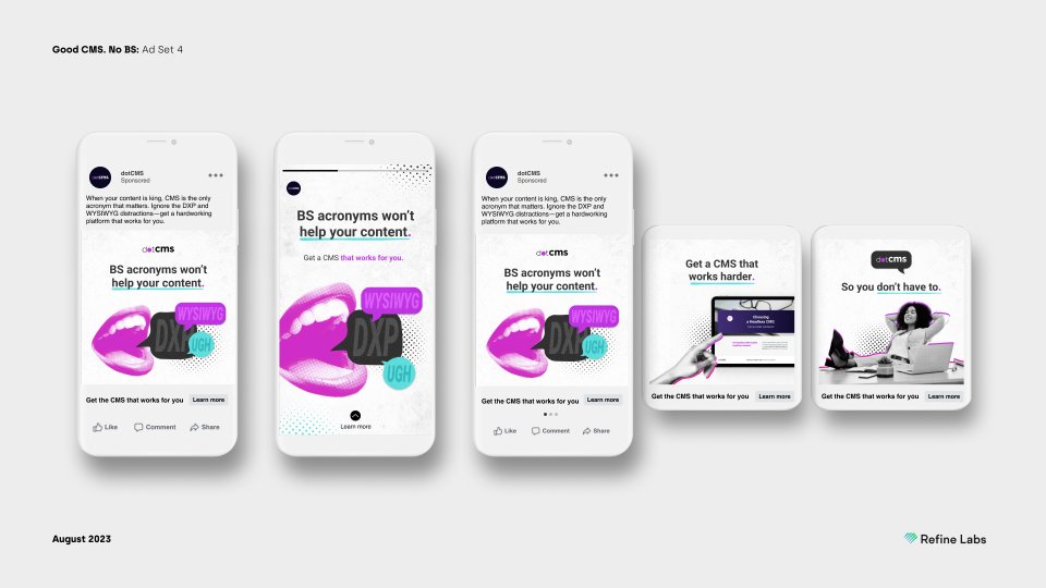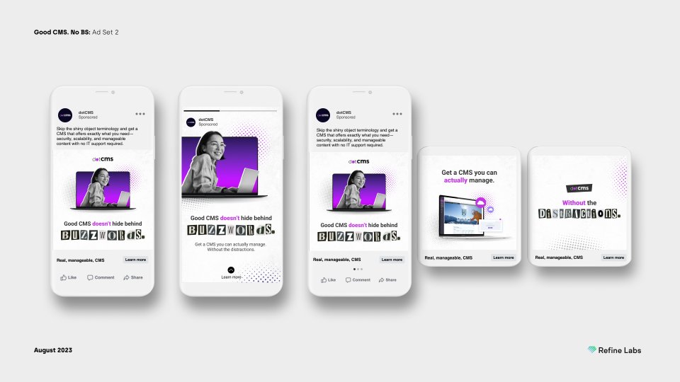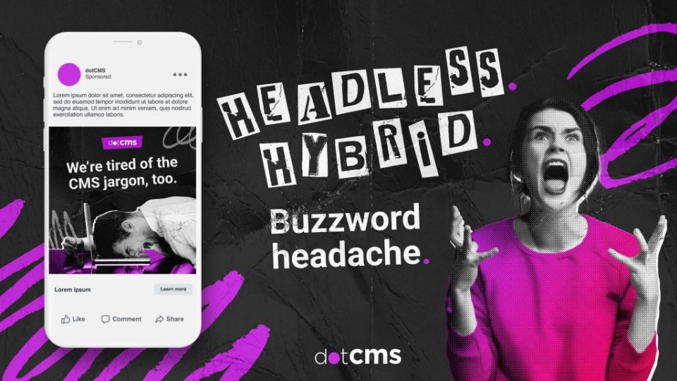 The Content Management industry is chock-full of competitors hiding their product flaws with made-up jargon. So we took a different approach with dotCMS. Based on customer insights, we put the buzzwords aside and cut through the industry noise with a bold, brand statement. A line in the sand that we won’t hide behind BS jargon. Or made-up buzzwords. We’re getting back to our roots—a CMS that works harder, so you don’t have to.